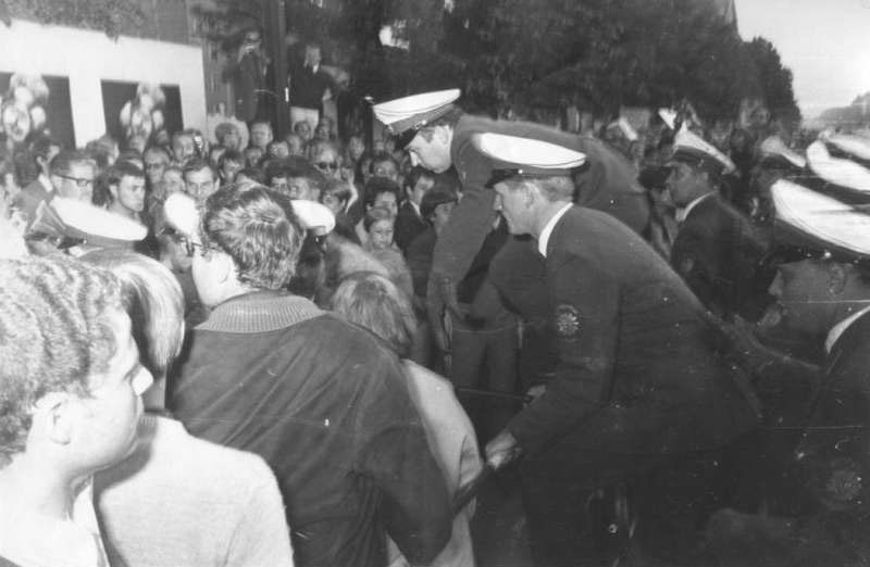 Benno Ohnesorg (Bildmitte) am 2. Juni 1967 wenige Minuten vor der Ermordung durch den westberliner Polizisten Kurras. (Quelle: radio berlin brandenburg / rbb)